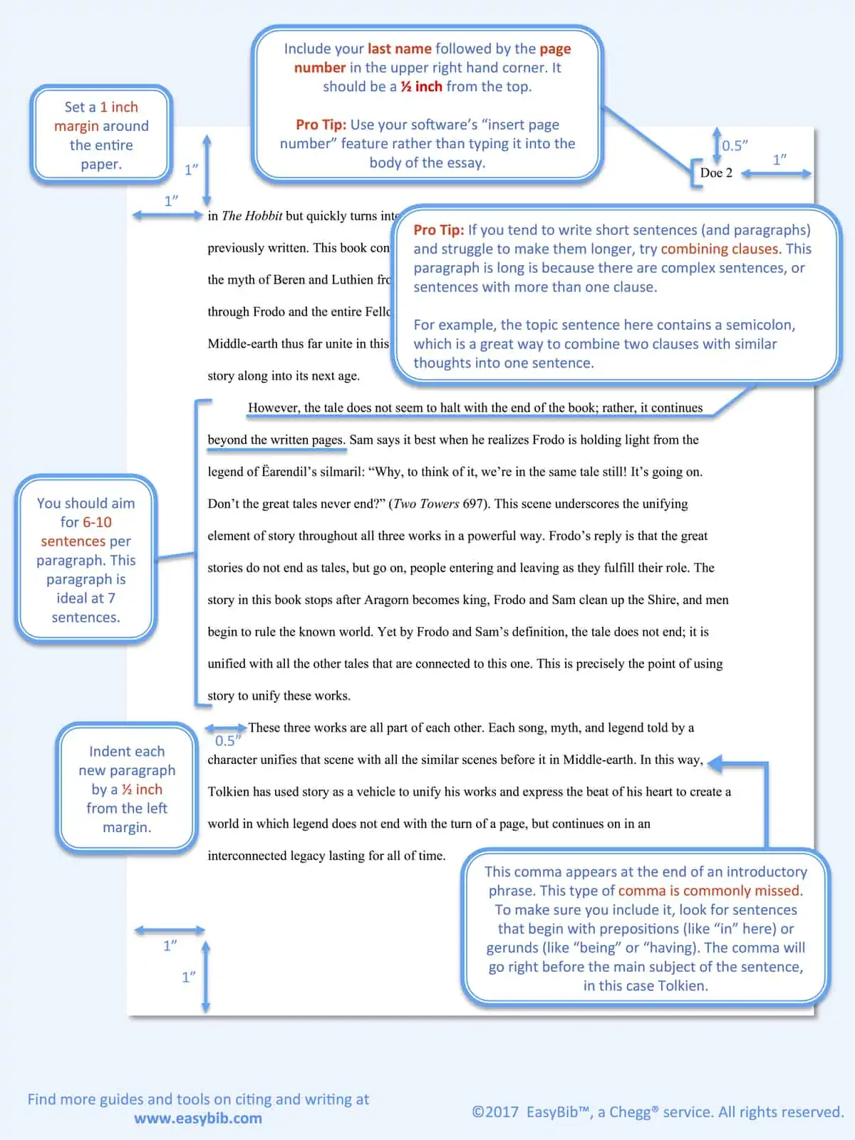 For starters, the essay is in MLA format. That means it follows the style manual of the Modern Language Association, which tells you how to format the paper itself and every source you cite. You’ll also see notes like how long a paragraph should be, how to use commas properly, and how to correctly punctuate a title. Some of these guidelines are different from those in APA format, so be sure to confirm you are using the correct style in your paper.